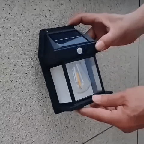 Solarbetriebene Wandleuchte für gemütliche Abende.